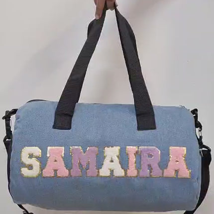 A perfect blend of comfort, style, and personalization, this denim duffle bag is made to accompany your child on every adventure.