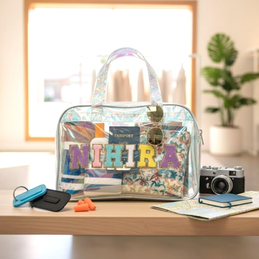 The Holographic Tote Bag is a trendy, eye-catching accessory designed for boys and girls who love a little sparkle! Made from premium holographic PVC material, this bag reflects light beautifully, creating a magical rainbow effect wherever your child goes. Personalized with your child’s name, it adds a special touch that makes every bag truly one of a kind.